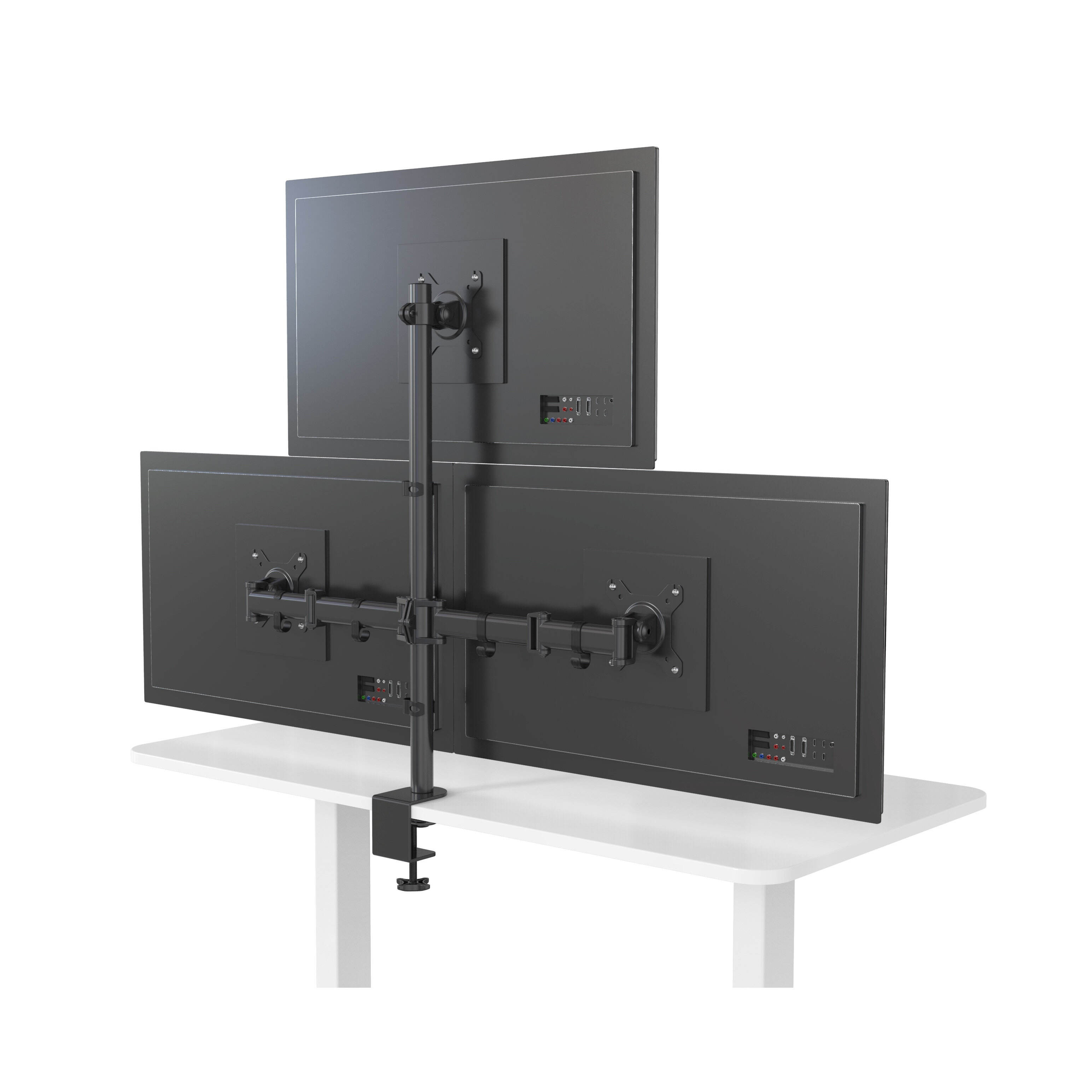 Designed specifically to fit corner workstations, providing seamless triple monitor support to maximize your desk area and multitasking efficiency.