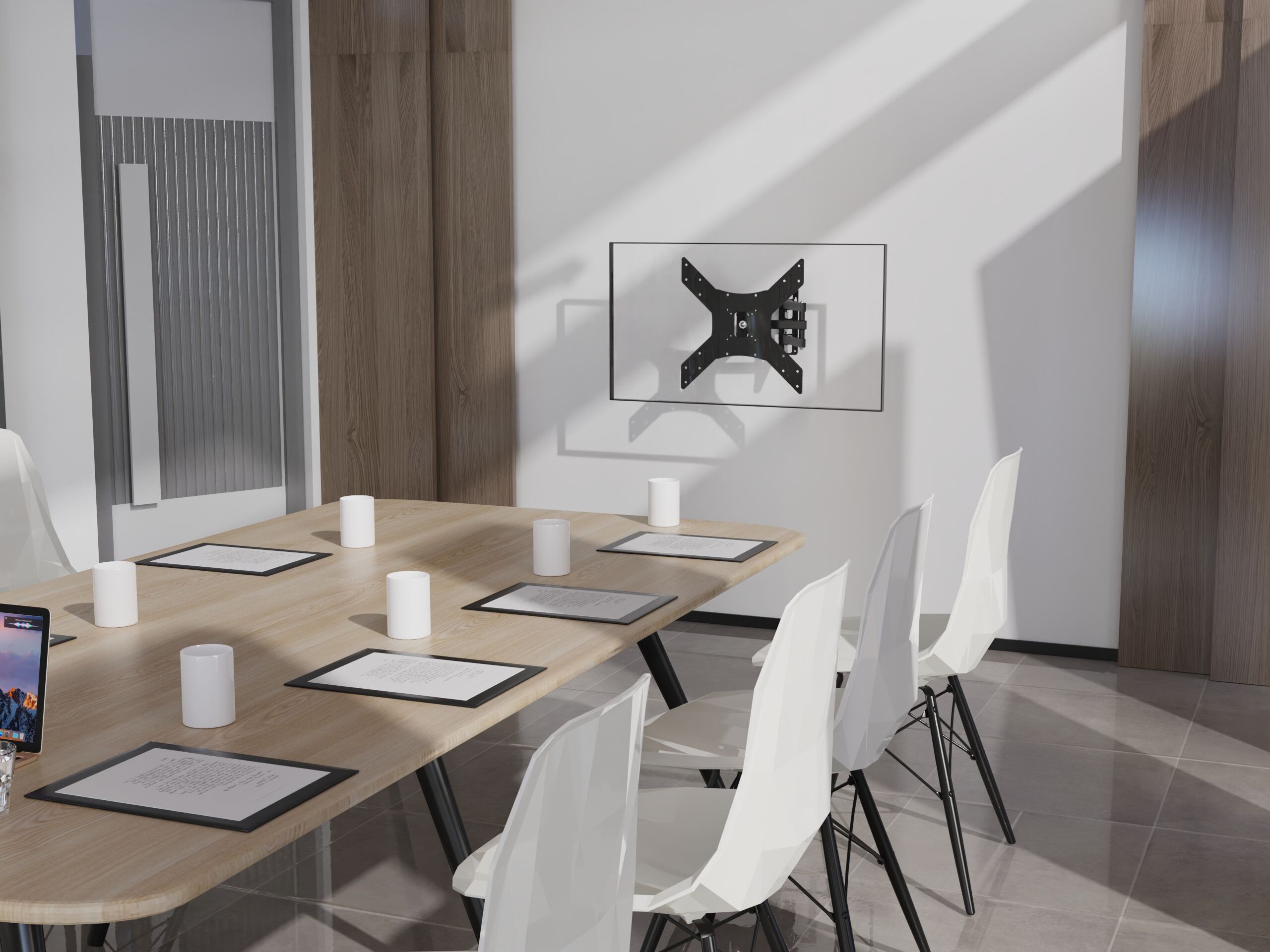 벽 가까이로 수납하여 깔끔한 외관을 연출하거나 더 나은 가시성을 위해 확장할 수 있습니다.