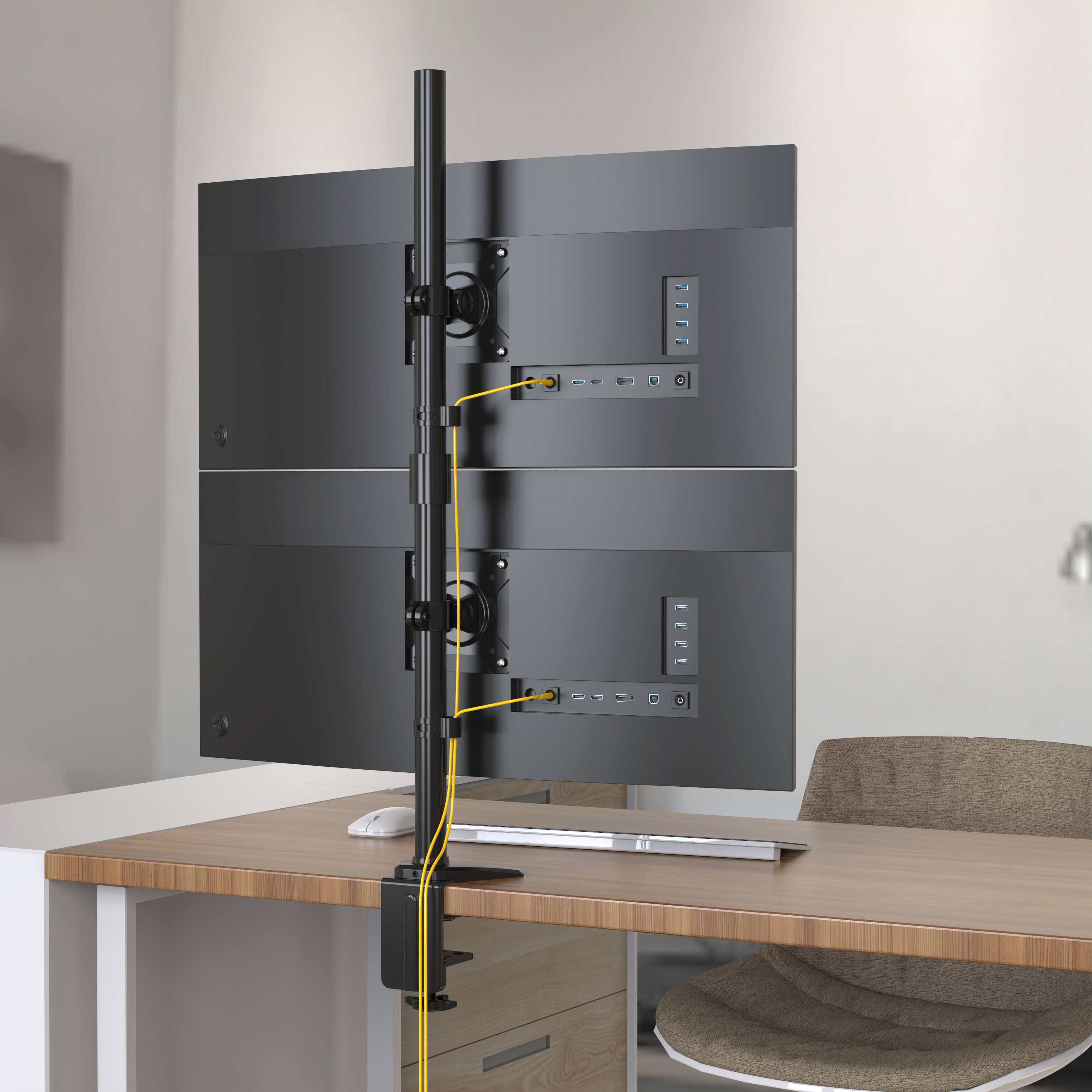 Each monitor arm offers 360° vertical rotation, 180° horizontal swivel, and tilt adjustment (+15° to -15°) for personalized viewing.